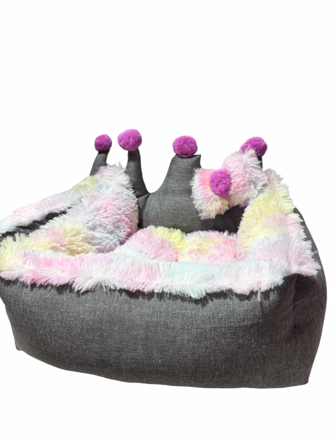 La Cama Princess Pequeña ha sido diseñada pensando en esos peluditos que no solo forman parte de la familia, sino que son realeza en casa. Desde su diseño encantador hasta su textura suave como una nube, esta camita hará que tu perro duerma como todo un rey o reina.
