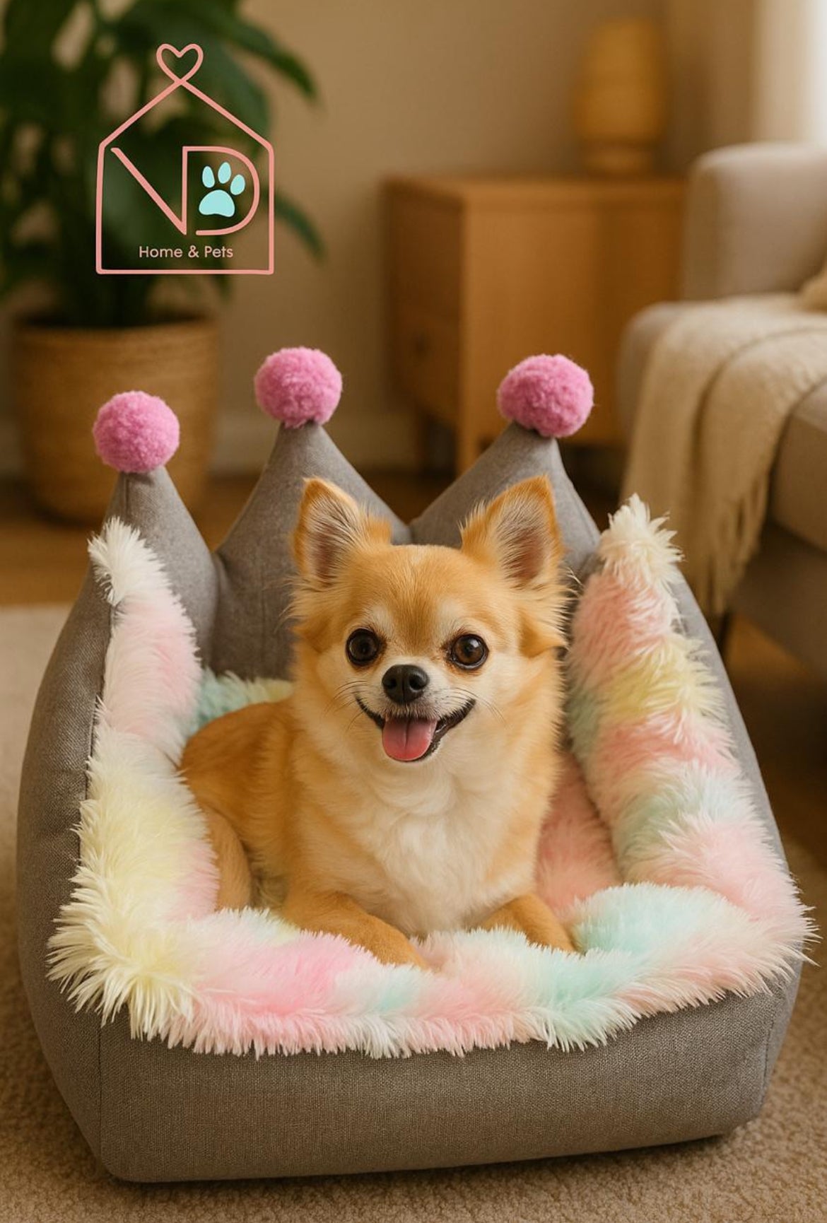 Fabricada con materiales suaves, resistentes y con un diseño tipo corona decorada con pompones, esta cama combina estilo y funcionalidad. Su relleno mullido brinda una sensación envolvente, ideal para perros pequeños que buscan calidez, seguridad y confort. ¡Además, luce increíble en cualquier rincón del hogar!